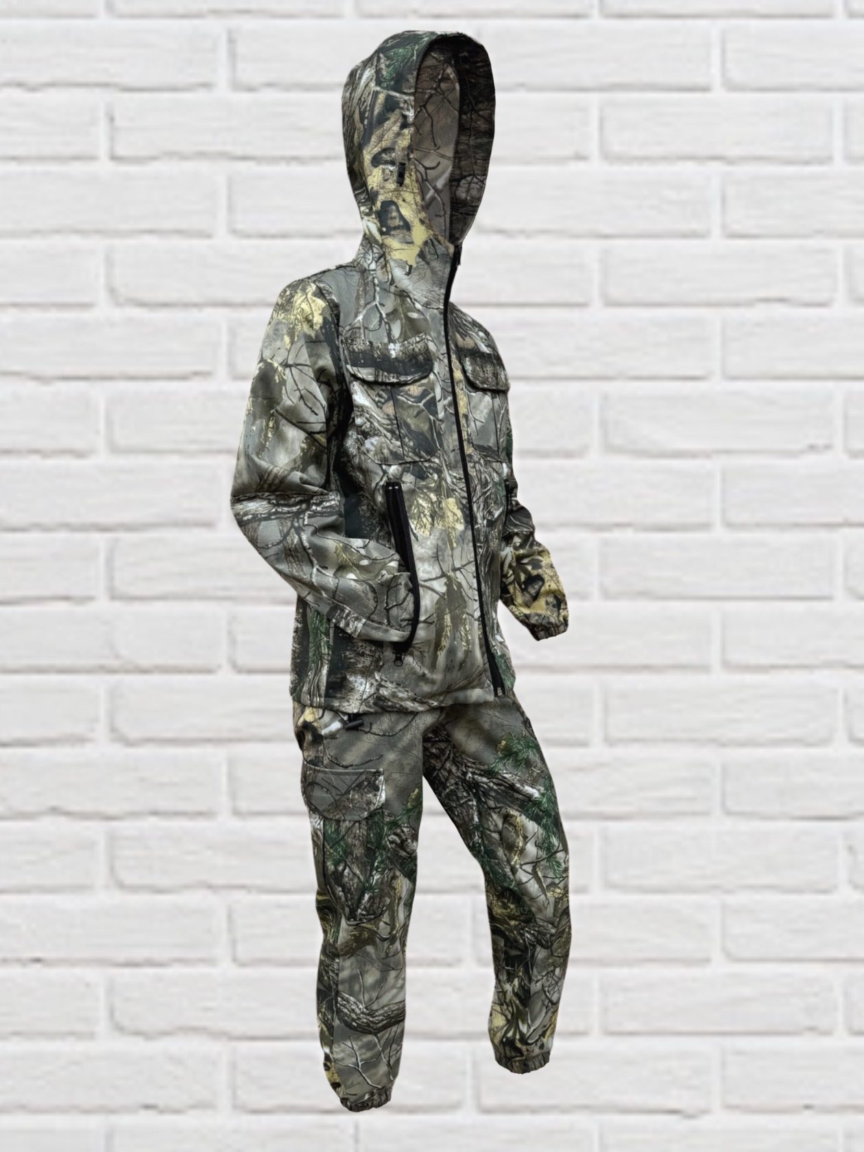 Маскувальний дитячий костюм легко переться і швидко сохне, він не мнеться і дуже простий у догляді та експлуатації. Камуфляжний дитячий костюм складається з куртки і штанів зручного крою. Куртка з капюшоном на блискавці має 2 кишені, штани мають 4 кишені. Обсяг капюшона регулюється. Завдяки щільно прилеглим гумкам на манжетах рукавів і штанів, костюм надійно захищає від вітру.