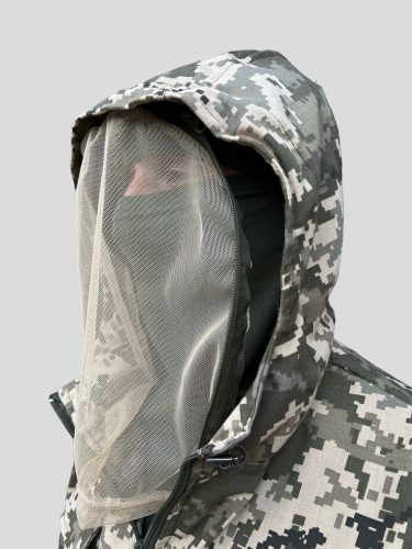 Захисний костюм від комах, який створювався під завдання, пов’язані з ризиком отримання укусів кровососучих та інших комах. Він відмінно захищає від комарів і мошок. Але не тільки від них. Комплект – куртка і штани – оснащені пастками від кліщів, тож і цим паразитам ви не дасте й найменшого шансу. Крім того, скрізь, де в цьому є потреба, зроблені еластичні вставки, для щільного прилягання до тіла. Це манжети рукавів, низ куртки, пояс штанів і низ штанин. Капюшон теж регулюється за овалом обличчя і глибиною. За необхідності, обличчя можна закривати москітною сіткою. За непотрібністю вона ховається в спеціальну кишеню на капюшоні.