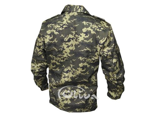 Куртка пряма, довга з планкою-застібкою на ґудзиках і відкладним коміром, манжети рукавів теж на ґудзиках. Куртка має шість накладних кишень з клапанами на липучці :
