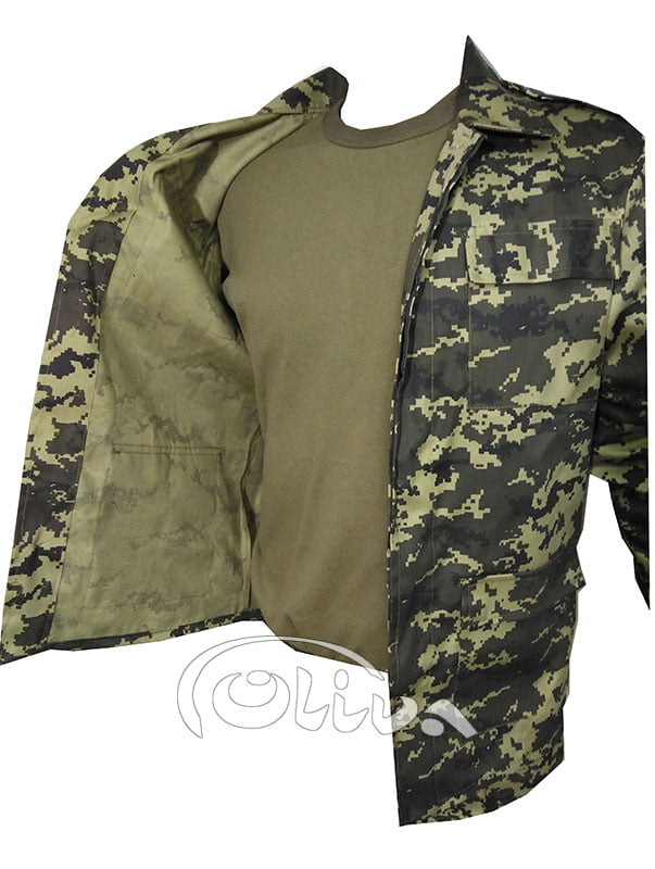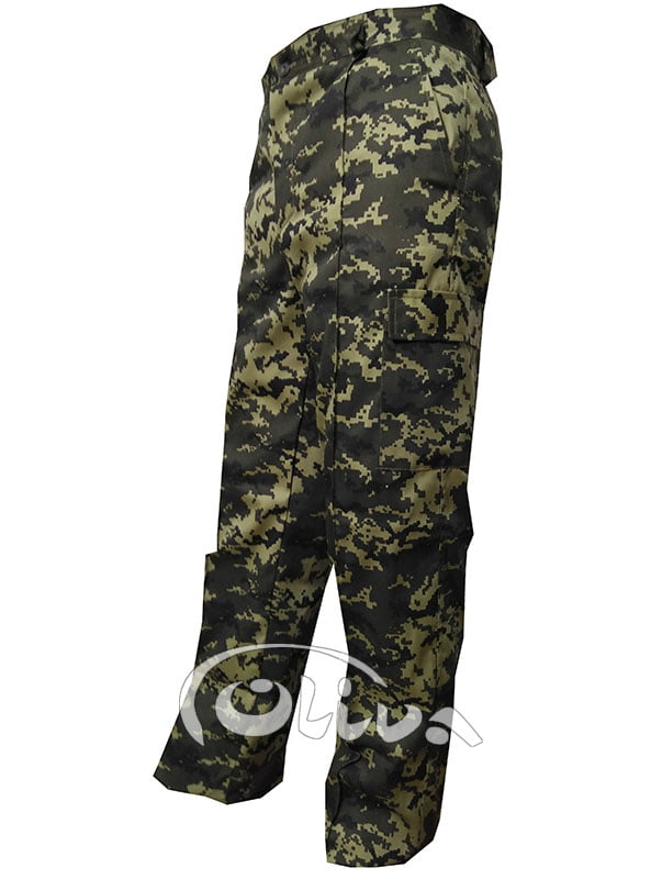 Камуфляжний костюм з якісної і водночас не дорогої тканини – саржа, 35% х/б 65% поліестер, яка витримує екстремальні навантаження і гарно переться не втрачаючи кольору.