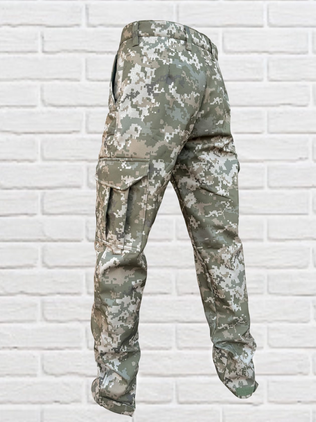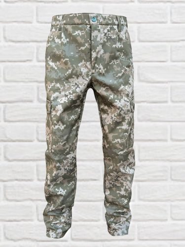 Штани прямого крою на замку, під ремінь. Мають 2 бічні врізні кишені та 2 накладні в районі колін. Низ штанини на липучці, для зручного регулювання довжини.