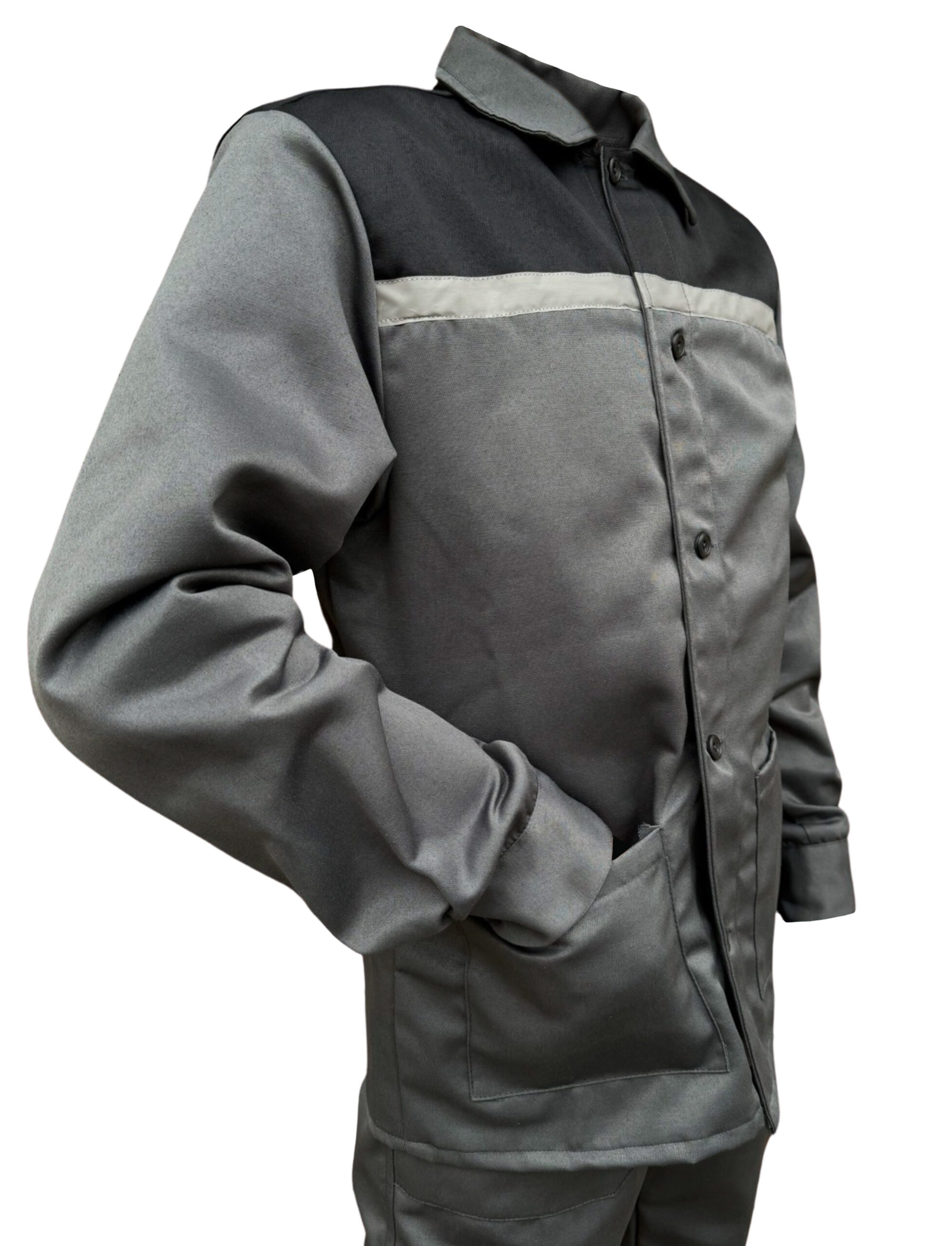 Робочий костюм виконаний з тканини – ДЕФЕНСА, 210 г/м2, 30% х/б 70% поліестер, з водовідштовхувальним просочуванням.